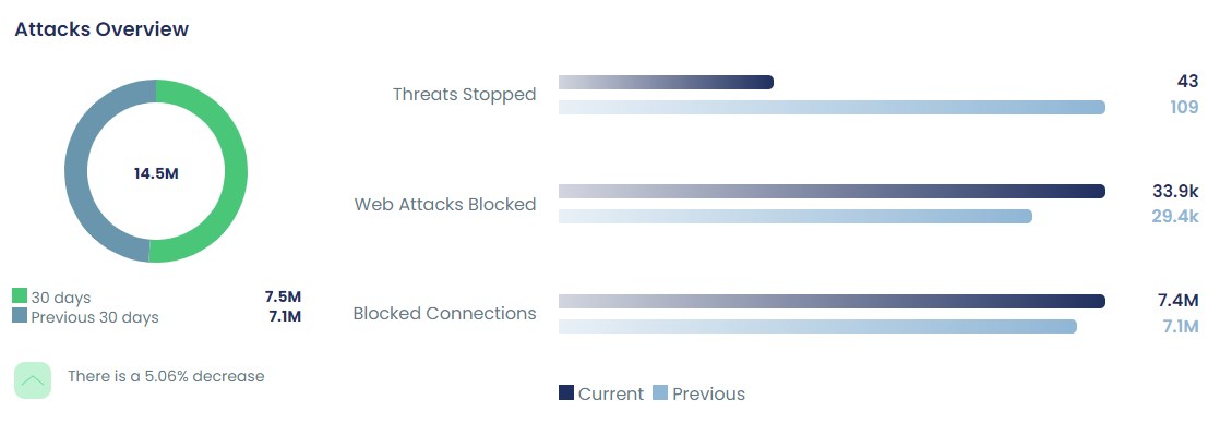 We have strict security protocols in place – This protects our clients and servers against attacks. Below you can see how our systems have performed this month in relation to last month in terms of what has been “stopped”